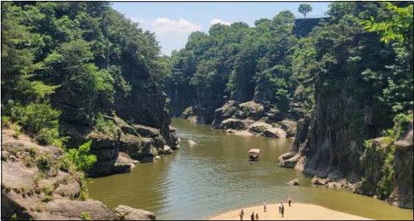 북한과 남한에서 따로따로 만들어 합체가 된 승일교를 지나 고석정 주차장에 도착했습니다. 철원 축제 기간과 겹쳐 사람이 많았습니다. 우리는 고석정 주차장 여기저기 그늘진 곳을 찾아 조별로 옹기종기 모여 점심을 챙겨 먹고 자유롭게 둘러 보았습니다.