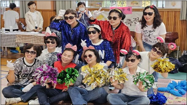각 지역별로 특색있는 모습으로 무대에 섭니다. 이 날만을 기다려온 듯 모두 열광의 도가니라는 표현이 딱 맞겠다 싶게 분위기를 만들어 갑니다. 동래지역 블랙핑크와 윗동네 유정희 님의 댄스공연이 첫 무대의 떨림을 열정으로 바꿔주었습니다. 의상이면 의상, 안무면 안무, 춤 실력 어느 것 하나 모자람이 없습니다.