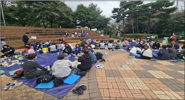 여는 모임과 같은 명심문으로 닫는 모임을 합니다. 봉사자들은 한결같이 말합니다. 오늘 윗동네 분들과 아랫동네 분들이 한마음 한뜻으로 축제를 즐기는 행복한 날입니다. 운동장에서 할 때와는 다른 오붓한 분위기라 좋다고도 합니다. 온라인으로 만나다가 오프라인으로 만나 설렜다고도 합니다.